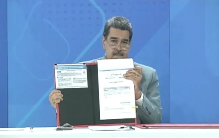 Venezuela Devlet Başkanı Nicolas Maduro, ülkesiyle Türkiye arasında 21 Temmuz 2023’te İstanbul’da imzalanan Yatırımların Karşılıklı Teşviki ve Korunması Anlaşması’nın Venezuela’daki onay sürecinin tamamlandığına ilişkin belgeyi “canlı yayında” imzaladı.