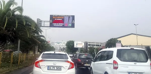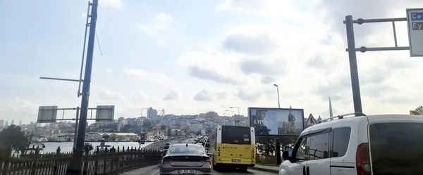 Haliç Köprüsü’ndeki asfalt çalışmaları sırasında orta köprü Mecidiyeköy istikameti trafiğe kapatılmış, araçlar trafik işaret levhaları ve ışıklı dubalarla Haliç Köprüsü yan yola yönlendirilmişti.