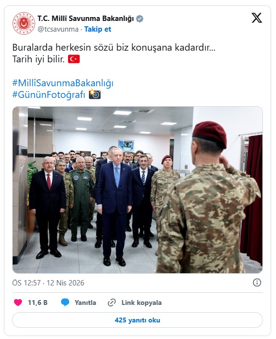 Bakanlığın sosyal medya hesabında, Cumhurbaşkanı Recep Tayyip Erdoğan’ın 4 Mart 2026 tarihinde Özel Kuvvetler Komutanlığı’na gerçekleştirdiği ziyaretten bir fotoğraf, “günün fotoğrafı” etiketiyle paylaşıldı.