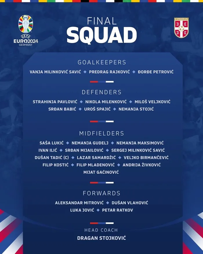 Sırbistan’ın EURO 2024 için nihai kadrosu şöyle: