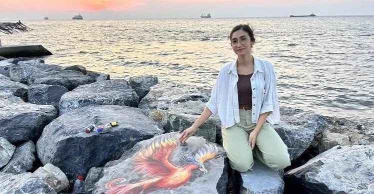 Enkazdan çıkan depremzede Edanur, şimdi sahildeki kayaları renklendiriyor